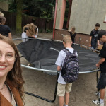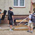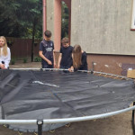 Uczniowie 2C wraz z wychowawczynią, panią Gabrielą Kobyłką, dostarczyli trampolinę na teren placówki oraz złożyli ją, tak, aby czekała już na podopiecznych, kiedy tylko wrócą ze szkoły, za co zostały im przekazane własnoręcznie wykonane podziękowania w formie laurki.